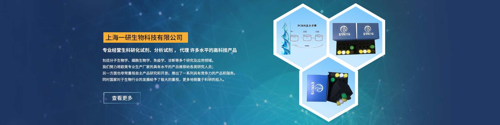 上海一研生物科技有限公司Shanghaiyiyanbio-technologyCo.Ltd.主要從事免疫學、分子生物學和常規生化試劑等為一體的科研產品銷售企業,公司自成立以來,秉承"全心全意服務于科研工作者"的企業理念,立足生物科技領域,運用生物技術和科研試劑,發展現代生物科技,為各類大中小醫院及其它醫療機構、高等院校、科研院所、企事業單位提供優質的產品,服務生物科技領域的科學研究人員。公司具有對...